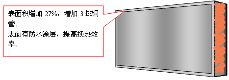5.增大了蒸發器面積,使焓差值提高到0.95,提高了熱交換效率。蒸發器的表面經過特殊的防水涂層處理,減少了冷凝水在其表面的停留時間,提高換熱效率。