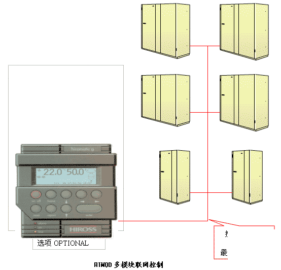 (1)溫度和濕度控制。 (2)液晶屏顯示相應參數。 (3)密碼保護,以防止設定參數被更改。 (4)備用機輪換,由多臺機器組成的系統中一般有若干臺是作為備用機。 為了防止備份機長期處于等待狀態,HIMOD可以設定輪換時間,到達時間后備份機自動轉為工作狀態,而其他工作機轉為備份狀態,如此循環往復。 |