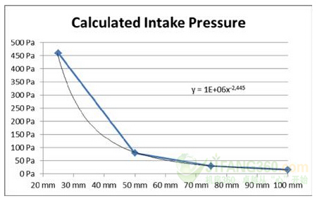 圖2:壓降與進(jìn)氣口高度曲線為0.2立方米/秒。
