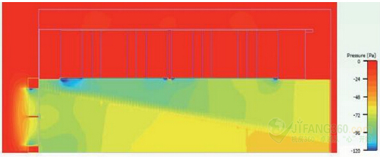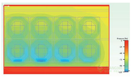 圖4:風(fēng)扇進(jìn)氣口的靜態(tài)壓力(0.2立方米/秒)。