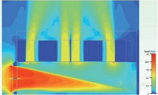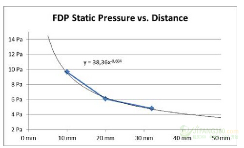 圖11:EMI屏蔽進(jìn)氣口的距離與風(fēng)扇的進(jìn)氣氣流分布:30毫米(0.2立方米/秒)。