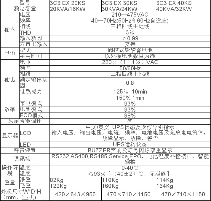 整機(jī)效率高達(dá)93%;提供ECO模式,使效率高達(dá)98%以上,降低了UPS的電力損耗。